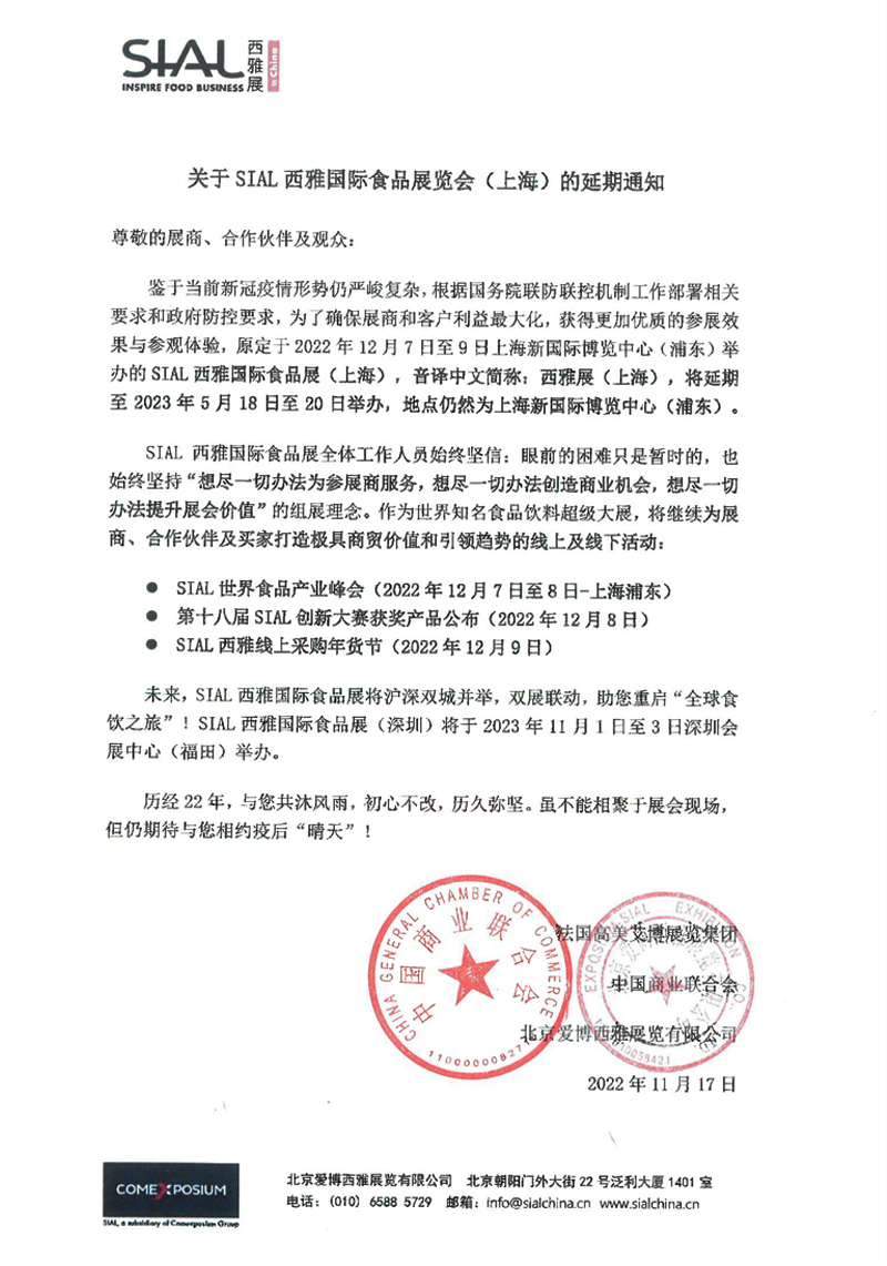 | 咨詢及購票 | 010-85728347 vicky.zhang@sialchina.cn Ina.zhao@sialchina.cn |