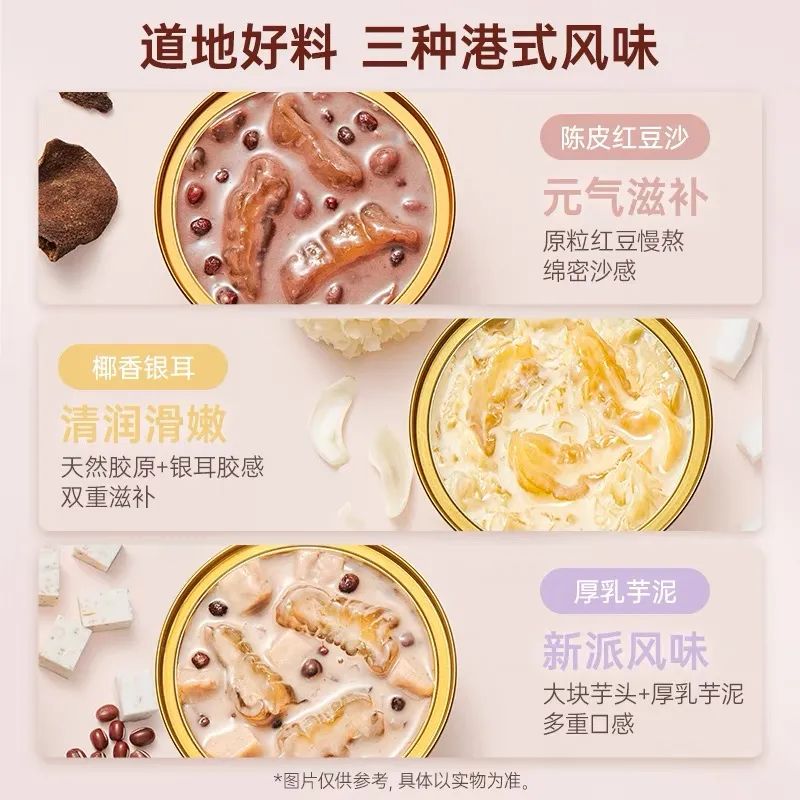 亮點(diǎn):3500mg進(jìn)口花膠、約1600mg膠原蛋白、每碗三大塊花膠、港式風(fēng)味糖水