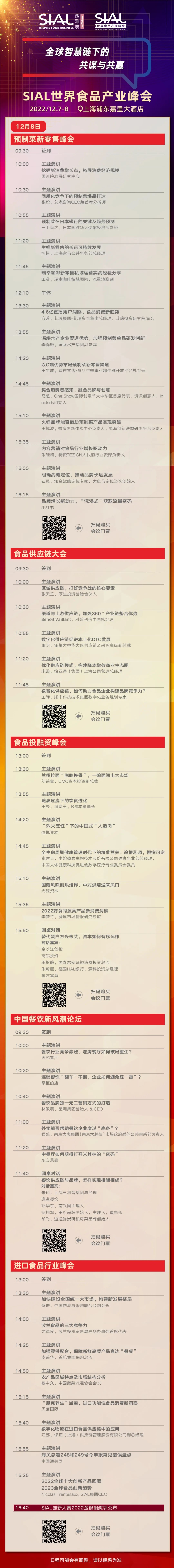 SIAL世界食品產(chǎn)業(yè)峰會(huì)將于2022年12月7日-8日如期舉辦!峰會(huì)將以“全球智慧鏈下的共謀與共贏”為主題舉辦包含預(yù)制菜、新零售、供應(yīng)鏈、農(nóng)業(yè)食品科技、食品投融資、營(yíng)養(yǎng)健康食品、植物性食品、乳業(yè)、肉類、飲品、中餐、進(jìn)口食品在內(nèi)的多場(chǎng)主題論壇。
