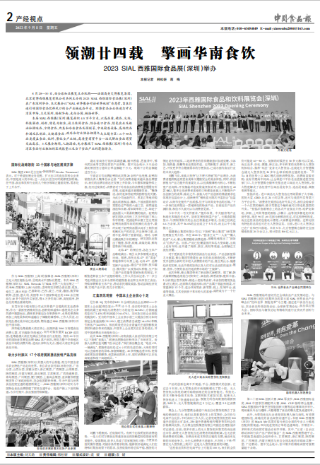 8月28日,由法國(guó)高美艾博展覽集團(tuán)、北京愛(ài)博西雅展覽有限公司共同主辦的2023 SIAL西雅國(guó)際食品展(深圳)在廣東深圳開(kāi)幕,吸引了全球33個(gè)國(guó)家和地區(qū)1200多個(gè)展商與40多個(gè)國(guó)內(nèi)外買(mǎi)家團(tuán)參展。