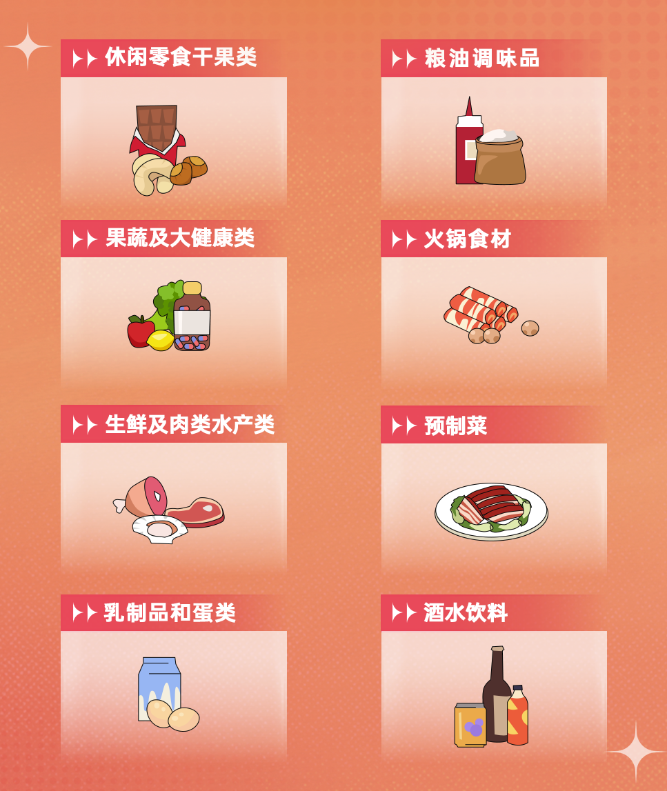 8大年貨品類,覆蓋采購(gòu)需求