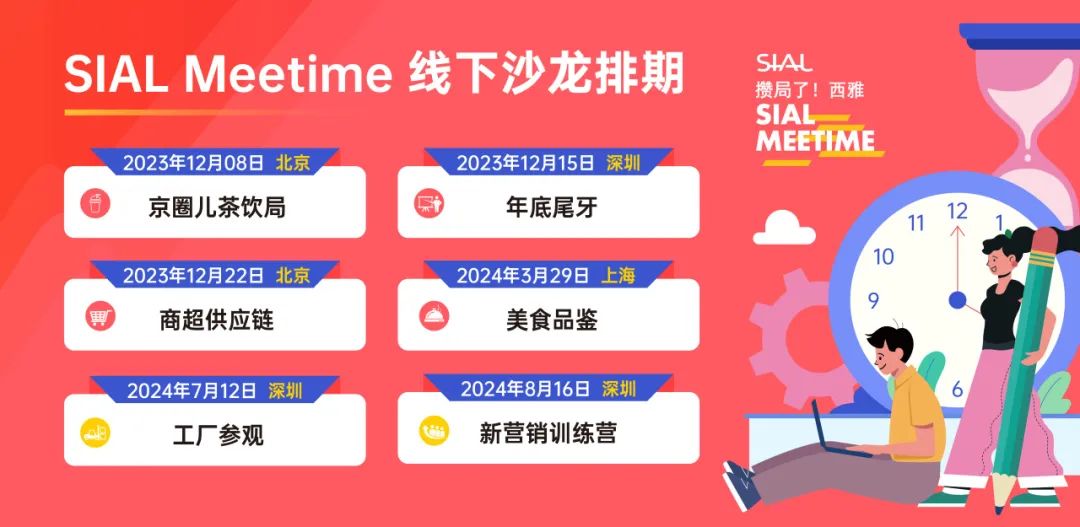 <SIAL Meetime 攢局了!西雅>是SIAL西雅國際食品展面向食飲行業(yè)推出的全新主題系列沙龍活動,每一期以不同形式主題活動召集食品、飲料、餐飲行業(yè)從業(yè)者參與,在輕松愉悅的氛圍中獲取行業(yè)知識,結(jié)交新的伙伴,開拓更多潛在商機。