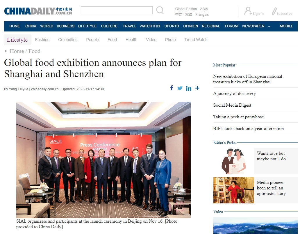 CHINA DAILY是國內(nèi)最早開通網(wǎng)站的國家級媒體,日訪問量達到5200萬人次,現(xiàn)已成為國家級綜合性媒體網(wǎng)站和中國最具影響力的英文網(wǎng)站。作為“世界食品貿(mào)易溝通交流使者”,SIAL展放眼全球、深耕中國市場,不斷獲得CHINA DAILY等權(quán)威媒體的利好報道,也逐漸成為中國食品對外貿(mào)易的一張“重要名片”。
