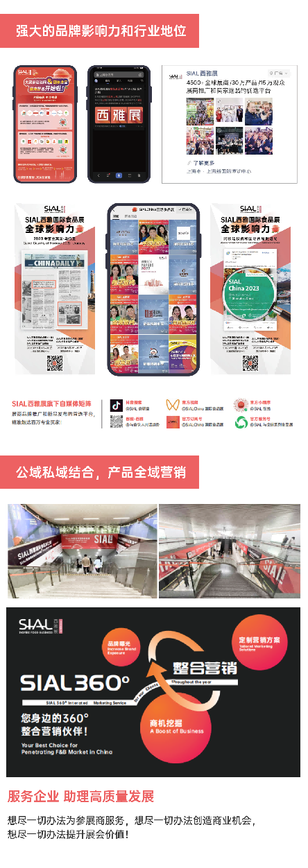 SIAL作為國際領(lǐng)先的食品飲料大展,不僅擁有強大的品牌影響力、豐富的專業(yè)買家資源,還具備全鏈路、全觸點、全洞察的能力。它以數(shù)據(jù)驅(qū)動,以消費者為中心,全面覆蓋展前、展中、展后,構(gòu)建了一個智能化營銷矩陣,幫助企業(yè)提升品牌知名度、發(fā)掘商機、促進產(chǎn)品流通。