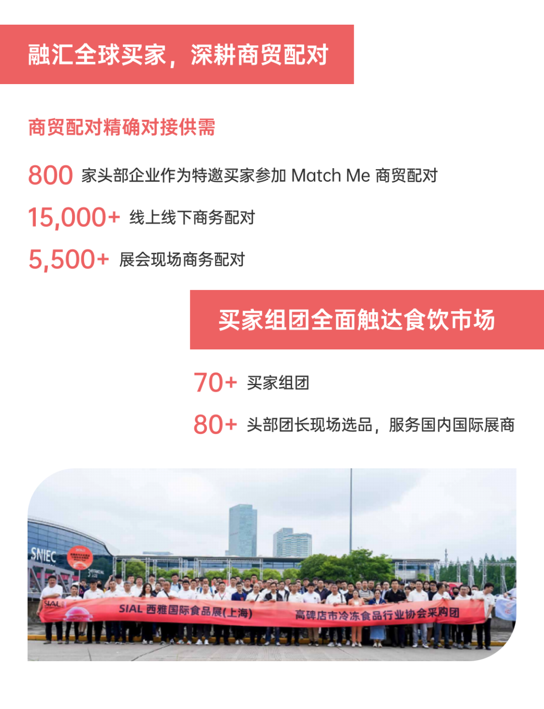 2024年SIAL 西雅展(上海)將進一步強化這一優(yōu)勢,通過提供Match Me 供需對接,為5,000+展商與18萬的食飲專業(yè)人士提供線上及線下對接,拓展更多潛在商機。
