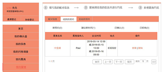 在觀眾中心首頁,您可找到預(yù)約展商的菜單,